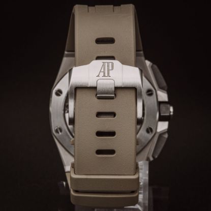 The Royal Oak Offshore retains the signature octagonal-shaped bezel with visible screws, inspired by a ship's porthole. The watch is known for its bold and masculine design.